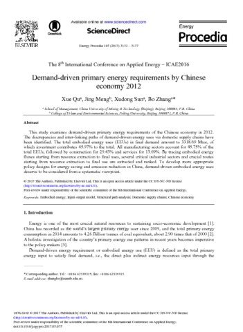 Keywords: | Embodied energy, Input-output model, Structural path analysis, Domestic supply chains, Chinese economy |