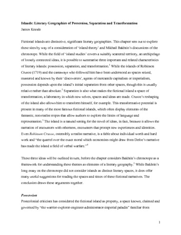 Title: | Islands: Literary geographies of possession, separation, and transformation |