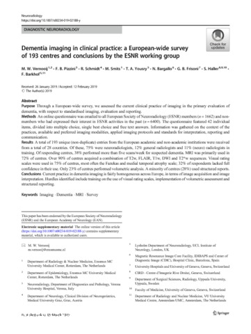 Title: | Dementia imaging in clinical practice: a European-wide survey of 193 centres and conclusions by the ESNR working group |