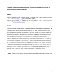 Title: | Evaluating Complex Health Interventions With Randomized Controlled Trials: How Do We Improve the Use of Qualitative Methods? |