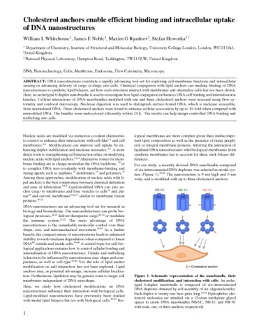 | Title: | Cholesterol Anchors Enable Efficient Binding and Intracellular Uptake of DNA Nanostructures |
