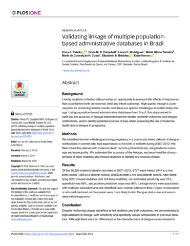 Validating linkage of multiple population-based administrative databases in Brazil.