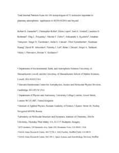 | Title: | Total internal partition sums for 166 isotopologues of 51 molecules important in planetary atmospheres: Application to HITRAN2016 and beyond |
