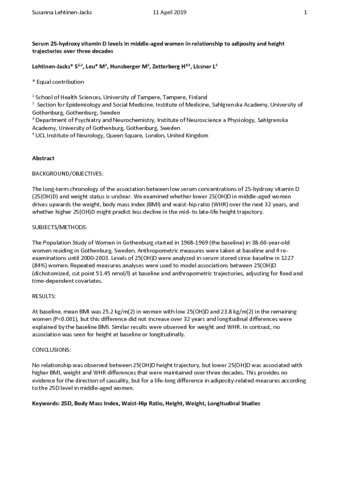 Serum 25-hydroxy vitamin D levels in middle-aged women in relationship to adiposity and height trajectories over three decades.