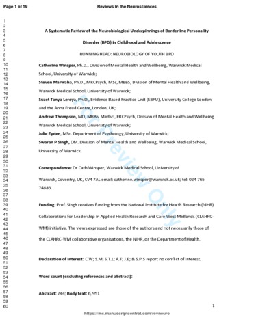 Lereya WRAP-systematic-review-neurobiological-BPD-adolescence-Winsper-2016.pdf - Accepted Version Download (1MB) | Preview |