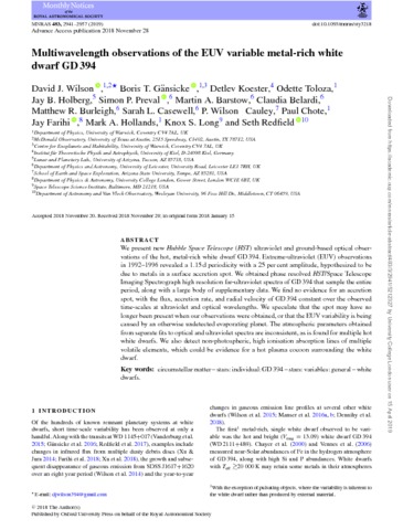 Title: | Multiwavelength observations of the EUV variable metal-rich white dwarf GD394 |