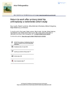 Kivimaki_Return to work after primary total hip arthroplasty. A nationwide cohort study_Proof.pdf - Published Version Download (647kB) | Preview |