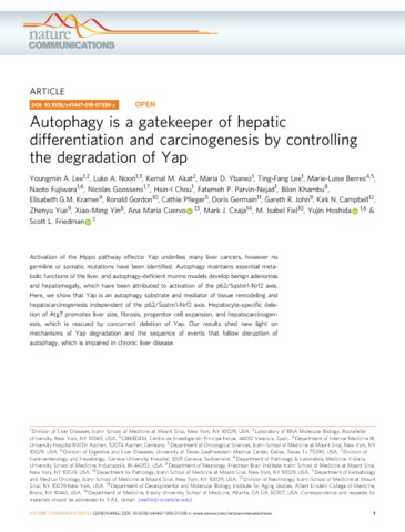 Title: | Autophagy is a gatekeeper of hepatic differentiation and carcinogenesis by controlling the degradation of Yap |