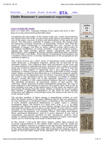 This article focuses on a short series of anatomical prints produced by Giulio Bonasone, a Bolognese engraver, during the second half of the sixteenth century, which deals with perceptions of the body and its representation in untraditional ways. In this article I will posit that these images, rather than propose an accurate representation of the human body which could be useful for medical students, respond to complex social and psychic implications that were (and still are) inextricably connected to the violent act of dissection.