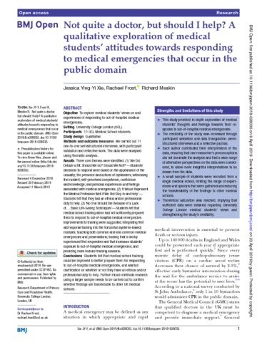 Title: | Not quite a doctor, but should I help? A qualitative exploration of medical students' attitudes towards responding to medical emergencies that occur in the public domain |