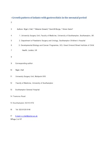 Title: | Growth pattern of infants with gastroschisis in the neonatal period |