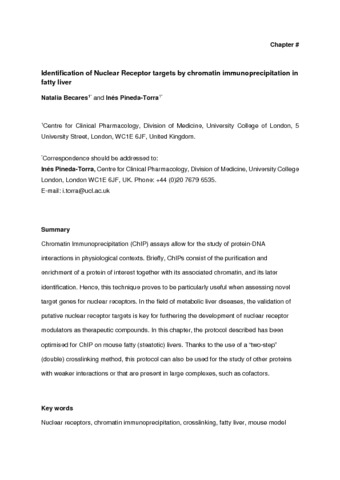 | Title: | Identification of Nuclear Receptor Targets by Chromatin Immunoprecipitation in Fatty Liver |