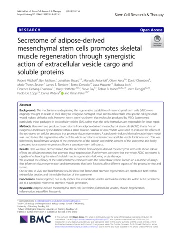 Title: | Secretome of adipose-derived mesenchymal stem cells promotes skeletal muscle regeneration through synergistic action of extracellular vesicle cargo and soluble proteins |