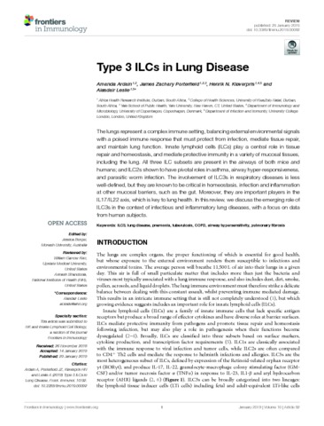 Keywords: | Science & Technology, Life Sciences & Biomedicine, Immunology, ILC3, lung disease, pnemonia, tuberulosis, COPD, airway hypersensitivity, pulmonary fibrosis, INNATE LYMPHOID-CELLS, GAMMA-DELTA T, STIMULATING FACTOR EXPRESSION, TISSUE HOMEOSTASIS, BRONCHIAL-MUCOSA, IMMUNE-RESPONSE, HOST-DEFENSE, IL-22, INFLAMMATION, INFECTION |