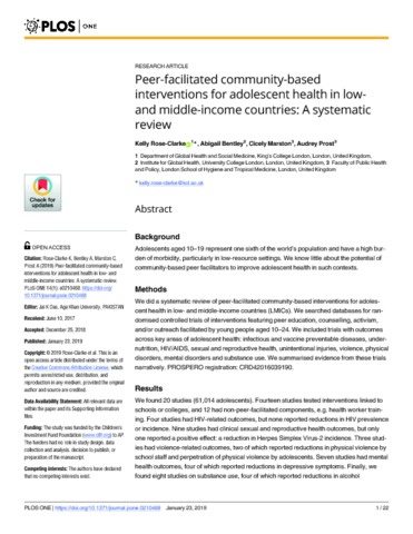 Title: | Peer-facilitated community-based interventions for adolescent health in low- and middle-income countries: A systematic review |