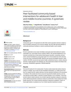 Peer-facilitated community-based interventions for adolescent health in low- and middle-income countries: A systematic review.