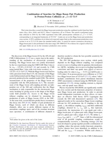 Keywords: | Science & Technology, Physical Sciences, Physics, Multidisciplinary, Physics, PP COLLISIONS, FINAL-STATES, EVENTS, HH |