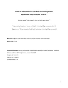 Title: | Trends in and correlates of use of roll-your-own cigarettes: a population study in England 2008-2017 |
