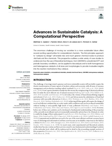 | Title: | Advances in sustainable catalysis: A computational perspective |