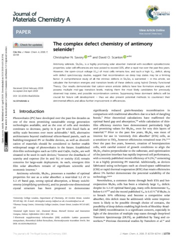 Scanlon_The complex defect chemistry of antimony selenide_VoR.pdf - Published Version Download (736kB) | Preview |