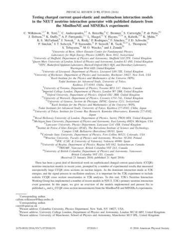 Title: | Testing charged current quasi-elastic and multinucleon interaction models in the NEUT neutrino interaction generator with published datasets from the MiniBooNE and MINER nu A experiments |