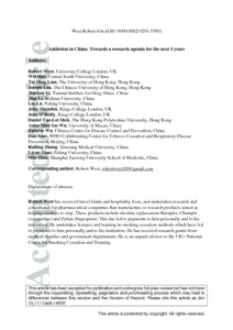 Title: | Addiction in China: Towards a research agenda for the next 5 years |