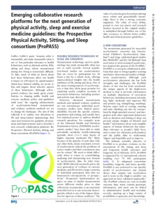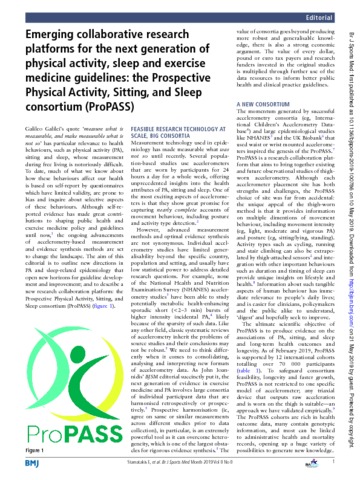 Title: | Emerging collaborative research platforms for the next generation of physical activity, sleep and exercise medicine guidelines: the Prospective Physical Activity, Sitting, and Sleep consortium (ProPASS) |