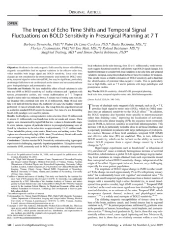 Title: | The Impact of Echo Time Shifts and Temporal Signal Fluctuations on BOLD Sensitivity in Presurgical Planning at 7 T. |