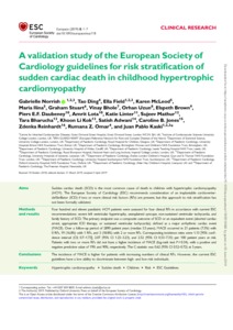 Title: | A validation study of the European Society of Cardiology guidelines for risk stratification of sudden cardiac death in childhood hypertrophic cardiomyopathy |