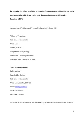 Title: | Investigating the effects of caffeine on executive functions using traditional Stroop and a new ecologically-valid virtual reality task, the Jansari assessment of Executive Functions (JEF(©)) |