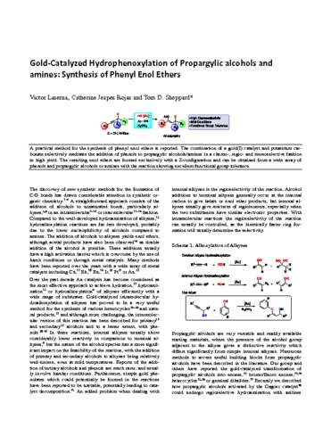 | Title: | Gold-Catalyzed Hydrophenoxylation of Propargylic Alcohols and Amines: Synthesis of Phenyl Enol Ethers |