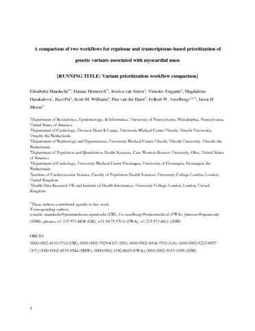 Title: | A comparison of two workflows for regulome and transcriptome-based prioritization of genetic variants associated with myocardial mass |