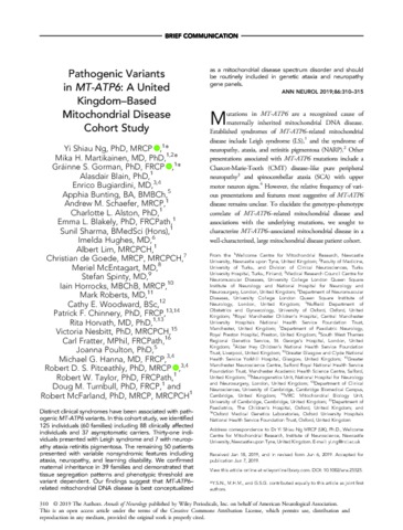 Title: | Pathogenic variants in MT-ATP6: A UK-based Mitochondrial Disease Cohort Study |