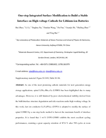 | Title: | One-Step Integrated Surface Modification To Build a Stable Interface on High-Voltage Cathode for Lithium-Ion Batteries |