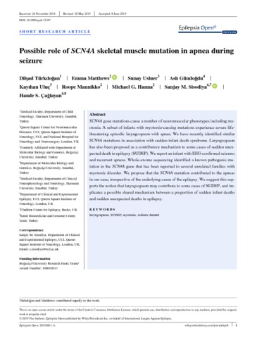 Title: | Possible role of SCN4A skeletal muscle mutation in apnoea during seizure |