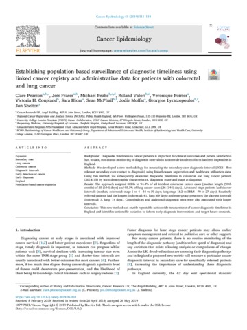 Title: | Establishing population-based surveillance of diagnostic timeliness using linked cancer registry and administrative data for patients with colorectal and lung cancer |