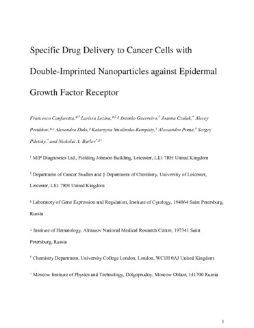 Title: | Specific Drug Delivery to Cancer Cells with Double-Imprinted Nanoparticles against Epidermal Growth Factor Receptor |