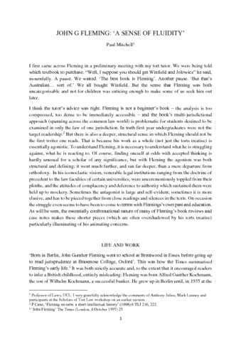 Professor John G Fleming (1919–1997): ‘A Sense of Fluidity’.