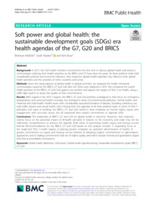 Title: | Soft power and global health: the sustainable development goals (SDGs) era health agendas of the G7, G20 and BRICS |