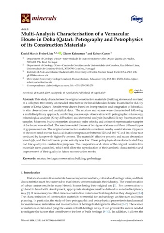 Title: | Multi-Analysis Characterisation of a Vernacular House in Doha (Qatar): Petrography and Petrophysics of its Construction Materials |
