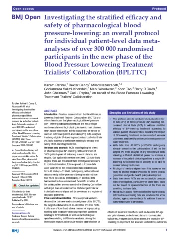 | Title: | Investigating the stratified efficacy and safety of pharmacological blood pressure-lowering: an overall protocol for individual patient-level data meta-analyses of over 300 000 randomised participants in the new phase of the Blood Pressure Lowering Treatment Trialists' Collaboration (BPLTTC) |