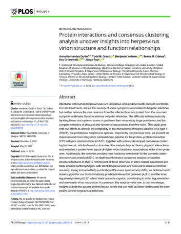 Title: | Protein interactions and consensus clustering analysis uncover insights into herpesvirus virion structure and function relationships |