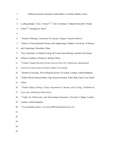 Title: | Global assessment of primate vulnerability to extreme climatic events |