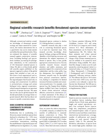 Title: | Regional scientific research benefits threatened species conservation |