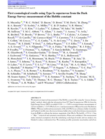 Title: | First cosmological results using Type Ia supernovae from the Dark Energy Survey: Measurement of the Hubble constant |