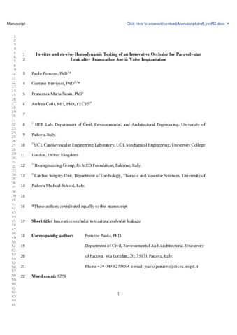 Burriesci_In-vitro and ex-vivo Hemodynamic Te 1 sting of an Innovative Occluder for Paravalvular Leak after Transcather Aortic Valve Implantation_AAM.pdf - Accepted Version Download (1MB) | Preview |