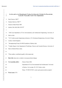 | Title: | In-vitro and ex-vivo Hemodynamic Te 1 sting of an Innovative Occluder for Paravalvular Leak after Transcather Aortic Valve Implantation |