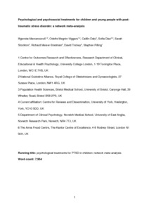 Mavranezouli_Psychological and psychosocial treatments for children and young people with post-traumatic stress disorder_AAM.pdf - Accepted Version Download (955kB) | Preview |