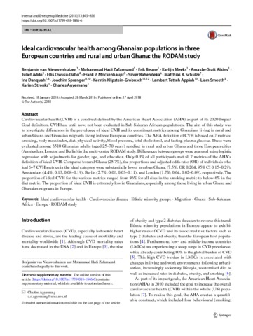 Title: | Ideal cardiovascular health among Ghanaian populations in three European countries and rural and urban Ghana: the RODAM study |
