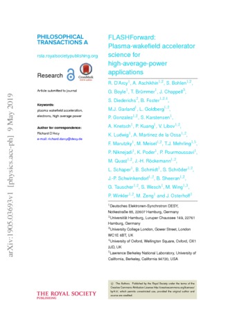 Title: | FLASHForward: plasma wakefield accelerator science for high-average-power applications |